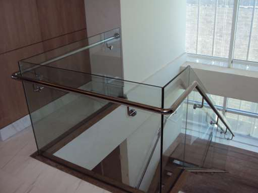 درابزين من الفولاذ المقاوم للصدأ مع زجاج بدون إطار
